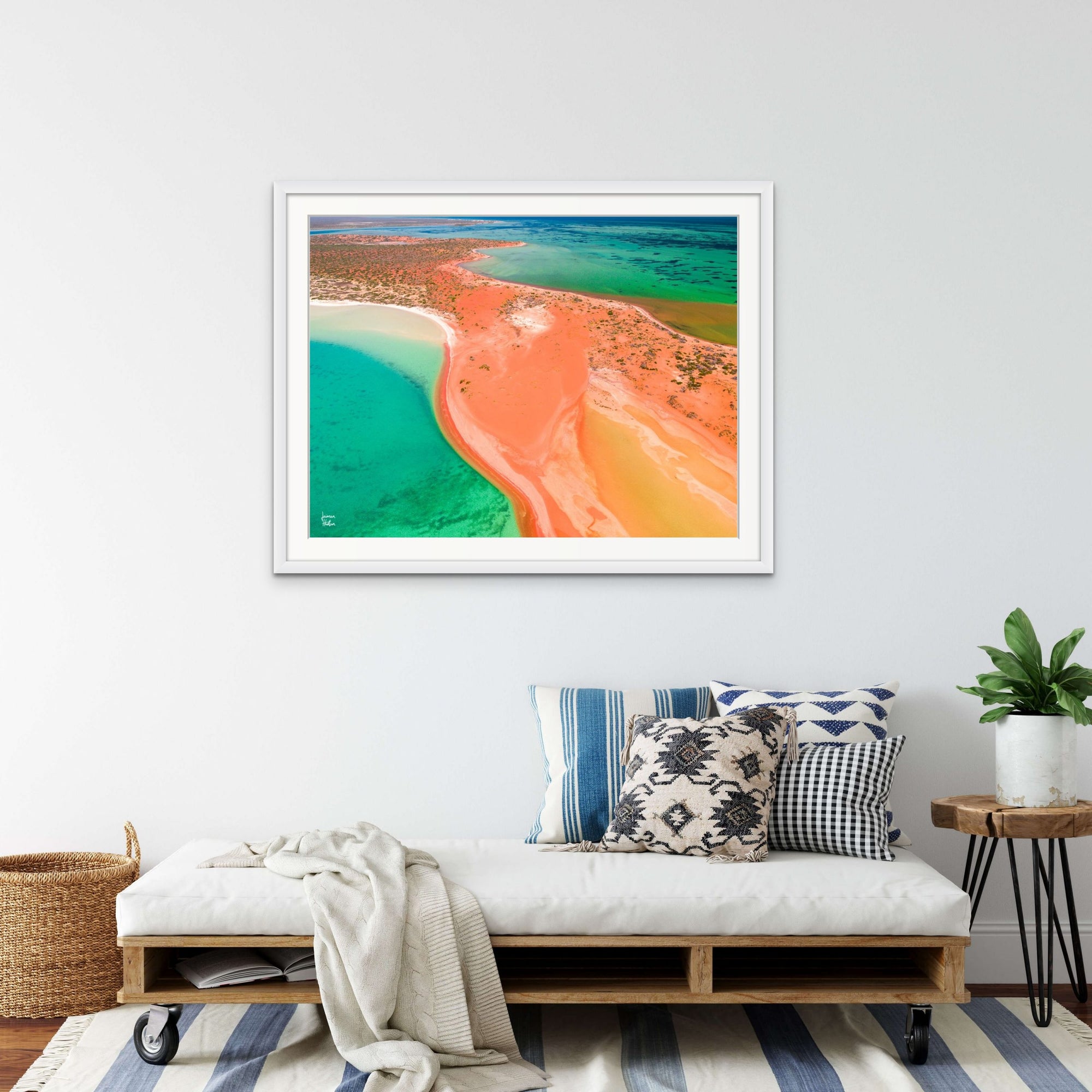 Image on metallic photo paper. Finished with a matt white border around the outer edge of the photo in a white timber box frame.
